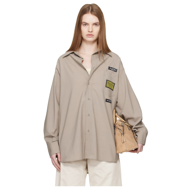 SSENSE: MM6 MAISON MARGIELA Taupe Tailored Wool-blend Shirt